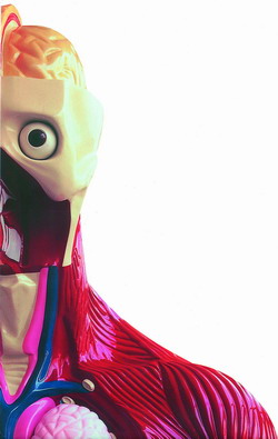 Гимн, значит. Надо полагать — человеку, раз уж человек изображен. Что ж, дело не новое. Ренессанс, помнится, этим увлекался — человек, мол, не только мера всех вещей, но вообще центр мироздания. Венец творения. Да, вот он, венец этот, аж шестиметровой высоты, как римский император какой. Только что это там виднеется? Кишки какие-то, потроха... Пищеварительный тракт, слизистые оболочки, железы, выделения...