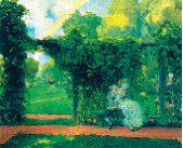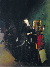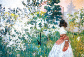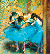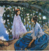 2. На доске вывешены репродукции картин художников — реалистов, импрессионистов, символистов. Например, «Голубые танцовщицы» Э. Дега (1); «Гадалка» М. Врубеля (2); «Осмеянный поцелуй» К. Сомова (3); «Проводы покойника» (4), «Проповедь на селе» (5) В. Перова; «Вдовушка» П. Федотова (6); «Водоем» (7), «Весна» (8) В. Борисова-Мусатова; «Дама в саду» К. Моне (9). Учащимся предлагается выбрать из этого ряда работы художников-символистов и объяснить свой выбор. После обсуждения в группах дети представляют репродукции и объясняют свой выбор.